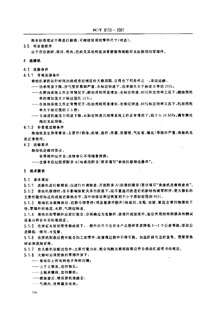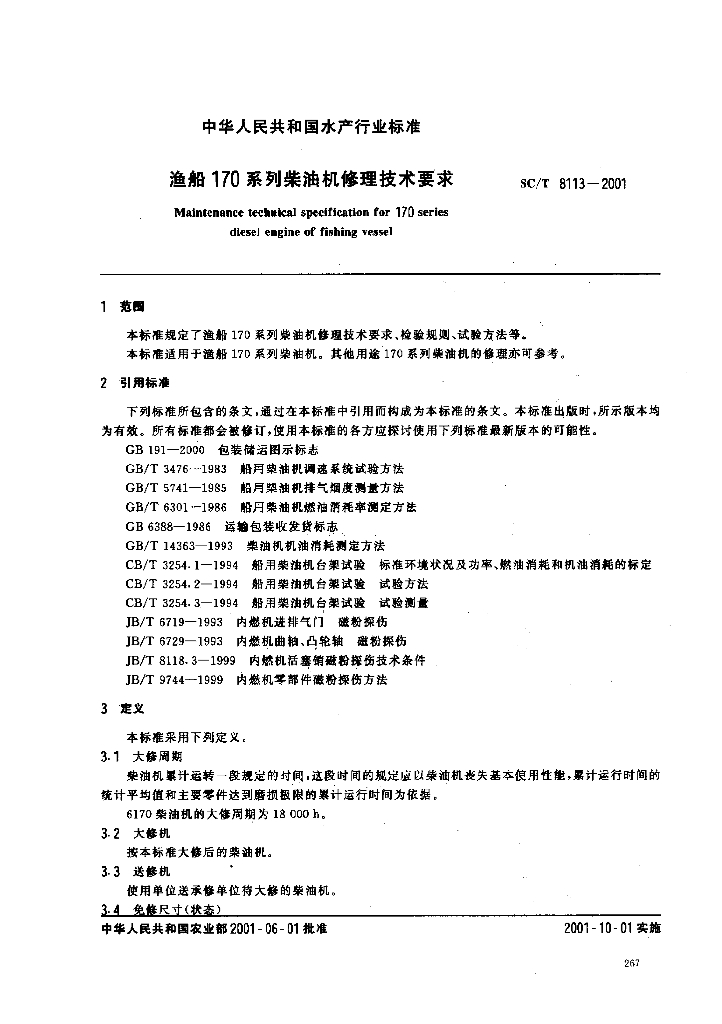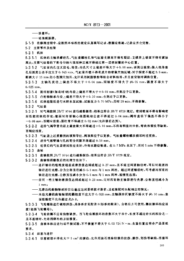 SC/T 8113-2001 渔船170系列柴油机修理技术要求