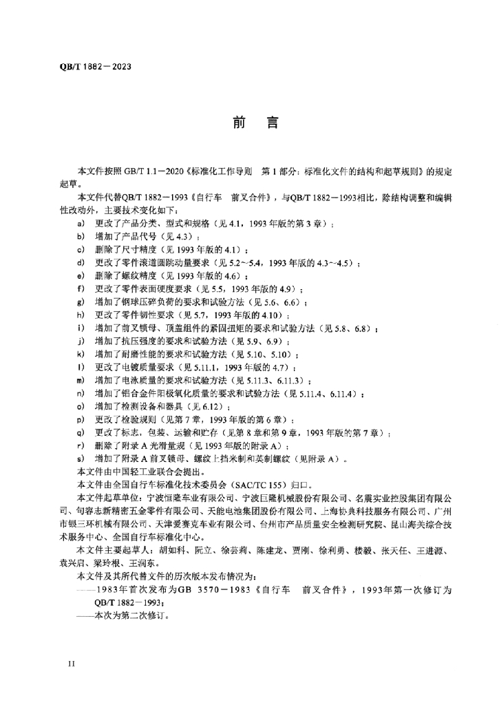 宁波恒隆车业有限公司、宁波巨隆机械股份有限公司、名震实业控股集团有限公司、句容志新精密五金零件有限公司、天能电池集团股份有限公司、上海协典科技服务有限公司、广州市银三环机械有限公司、天津爱赛克车业有限公司、台州市产品质量安全检测研究院、昆山海关综合技术服务中心、全国自行车标准化中心