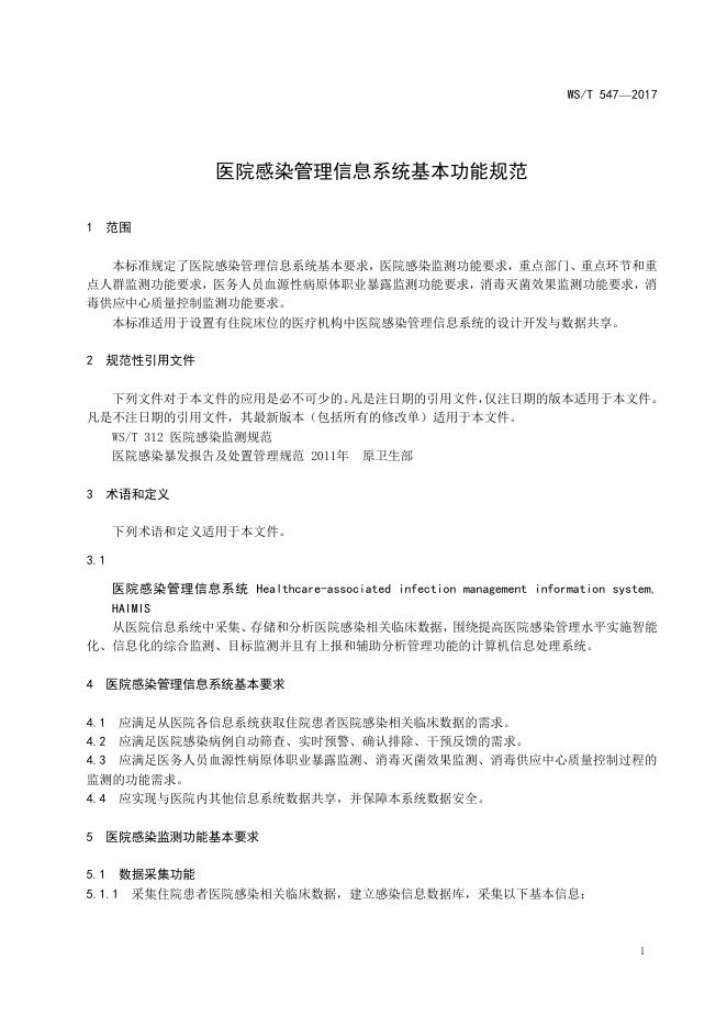 WS/T 547-2017 医院感染管理信息系统基本功能规范