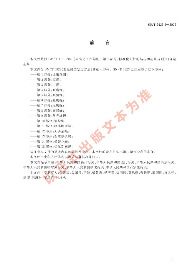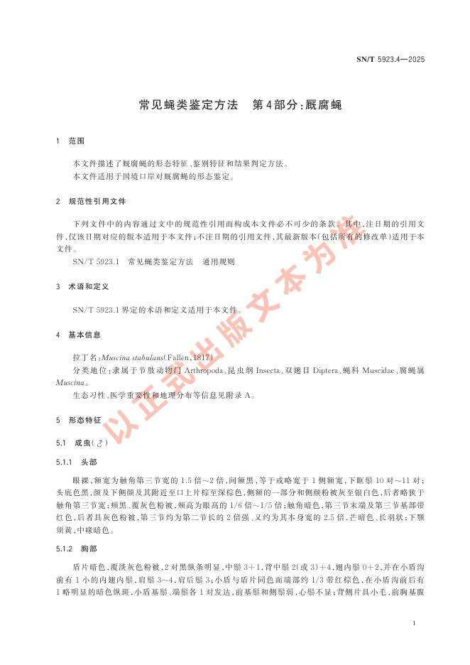 SN/T 5923.4-2025 常见蝇类鉴定方法 第4部分:厩腐蝇
