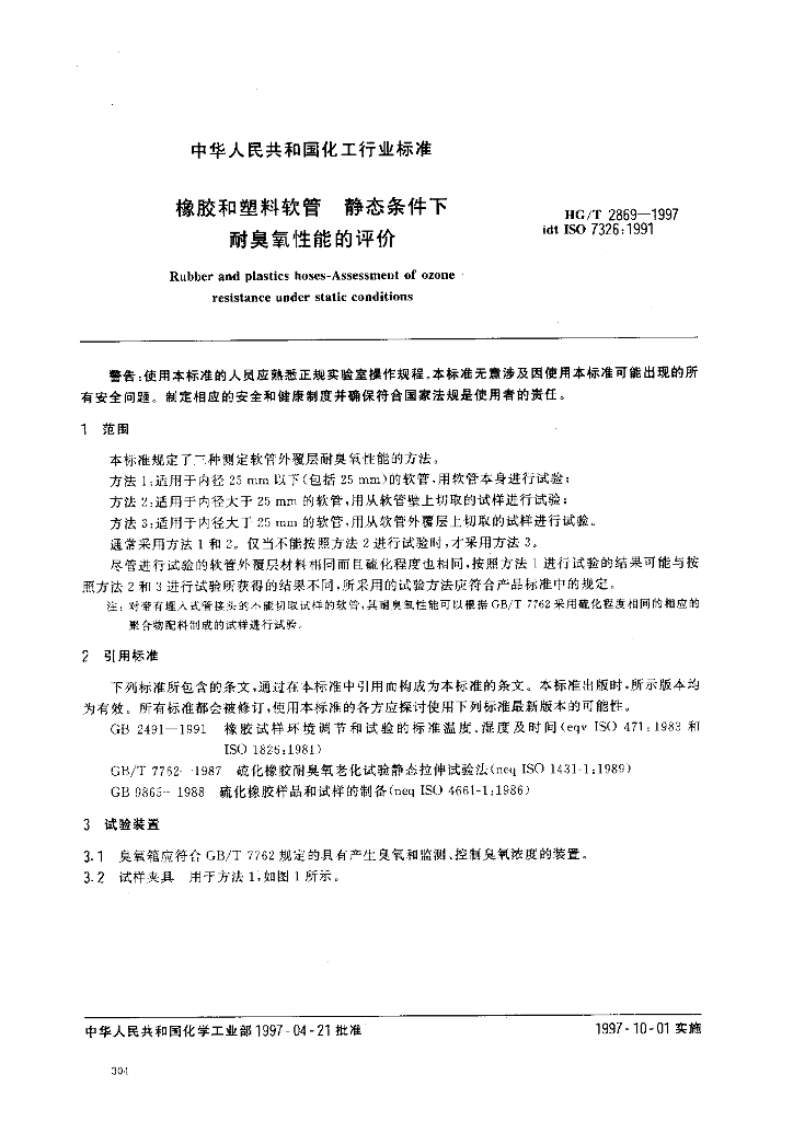 HG/T 2869-1997 橡胶和塑料软管--静态条件下耐臭氧性能的评价