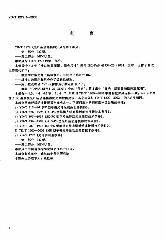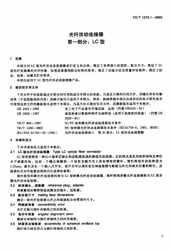 YD/T 1272-2003 光纤活动连接器 第1部分:LC型