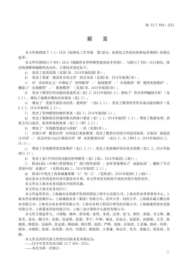 DB31/T 800-2025 城镇供水管网模型建设技术导则
