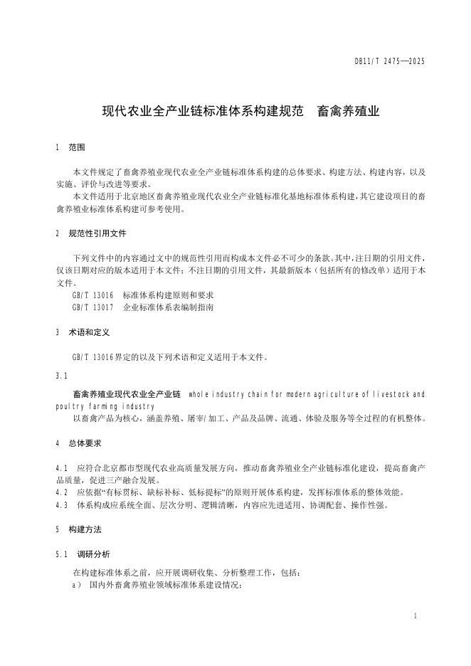 DB11/T 2475-2025 现代农业全产业链标准体系构建规范 畜禽养殖业