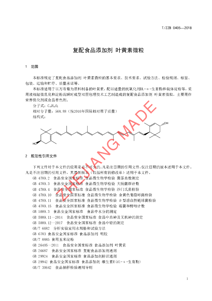 T/ZZB 0405-2018 复配食品添加剂 叶黄素微粒