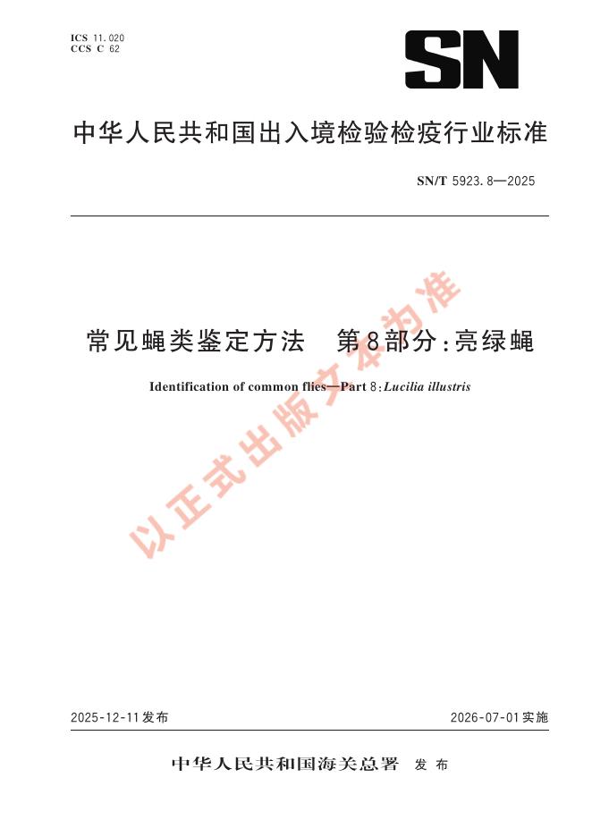 SN/T 5923.8-2025 常见蝇类鉴定方法 第8部分:亮绿蝇
