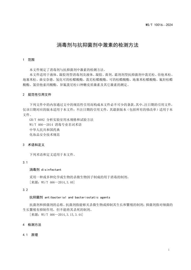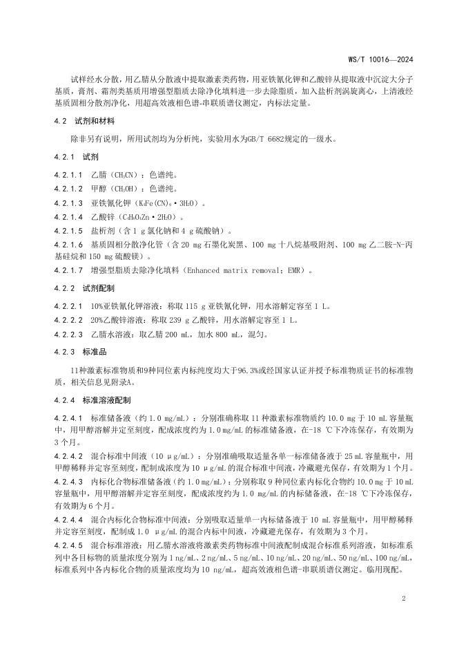 WS/T 10016-2024 消毒剂与抗抑菌剂中激素的检测方法