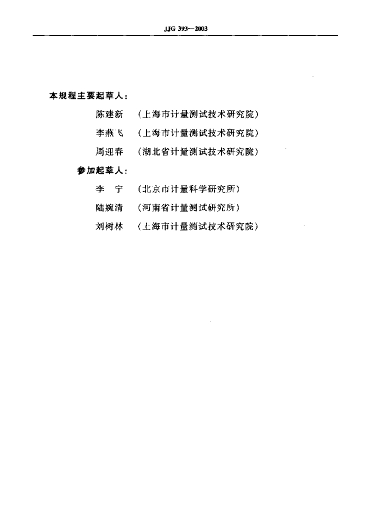 陈建新(上海市计量测试技术研究院)、李燕飞(上海市计量测试技术研究院)、周迎春(湖北省计量测试技术研究院)、李宁(北京市计量科学研究所)、陆婉清(河南省计量测试研究所)、刘树林(上海市计量测试技术研究院)