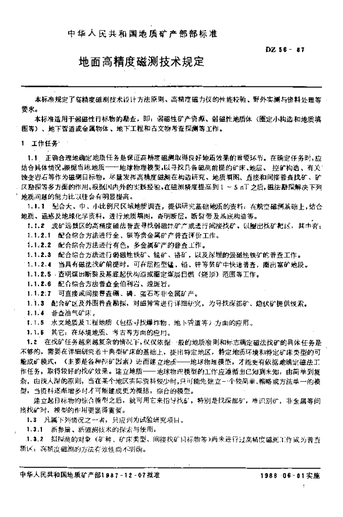 DZ 56-1987 地面高精度磁测技术规定