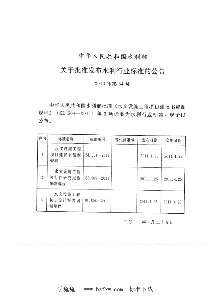SL 506-2011 水文设施工程初步设计报告编制规程