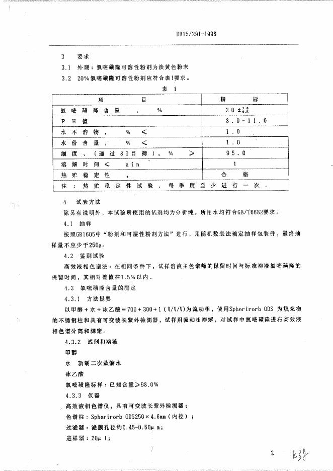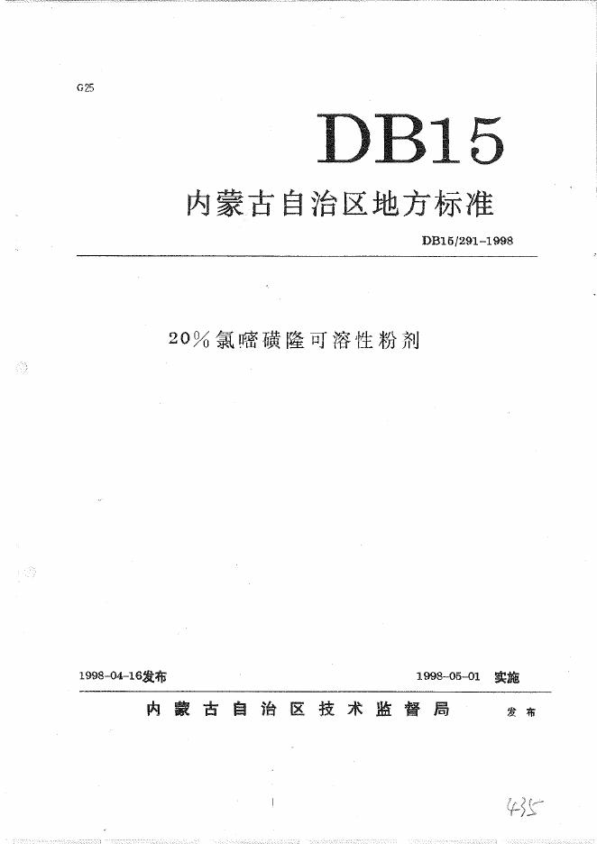 DB15/ 291-1998 20%氯嘧磺隆可溶性粉剂