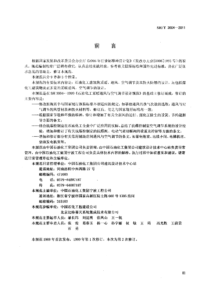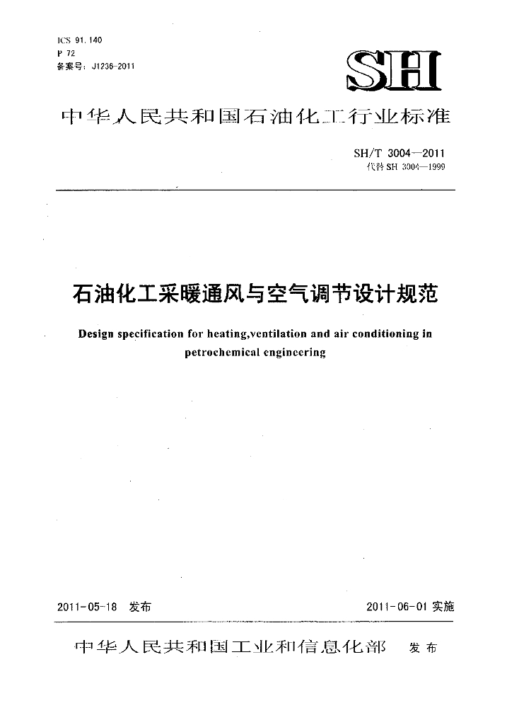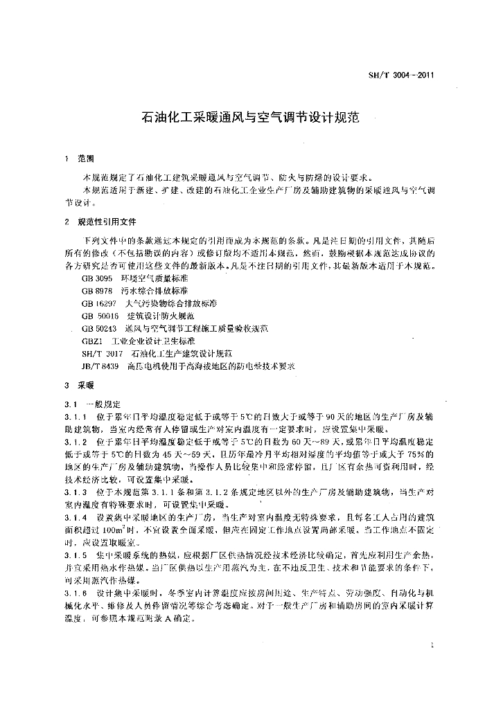 SH/T 3004-2011 石油化工采暖通风与空气调节设计规范