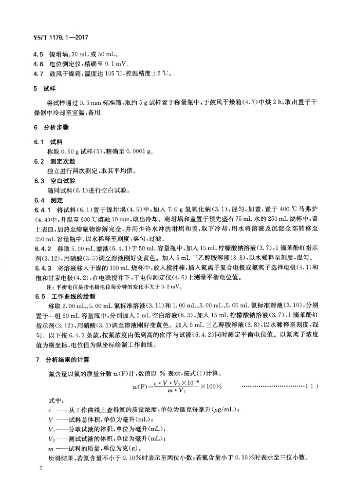 YS/T 1179.1-2017 铝渣化学分析方法 第1部分:氟含量的测定离子选择电极法