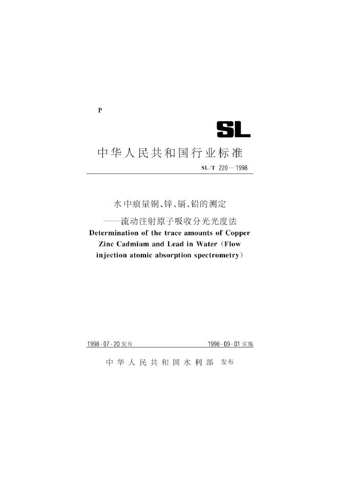 SL/T 220-1998 水中痕量铜、锌、镉、铅的测定 流动注射原子吸收分光光度法