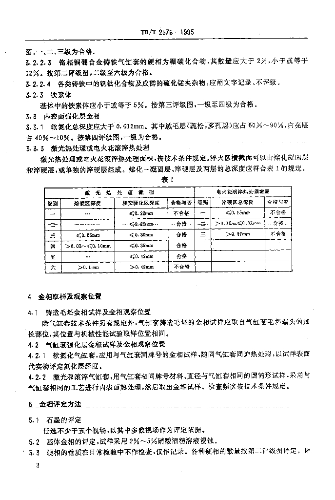 TB/T 2576-1995 内燃机车柴油机气缸套金相检验