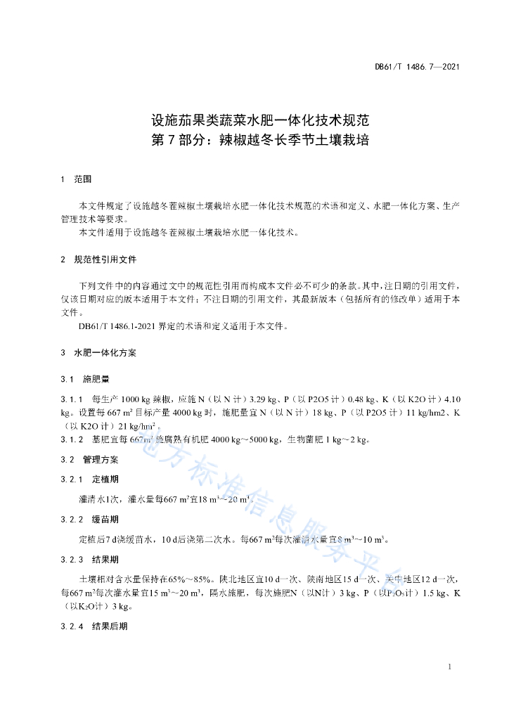 DB61/T 1486.7-2021 设施茄果类蔬菜水肥一体化技术规范 第7部分:辣椒越冬长季节土壤栽培