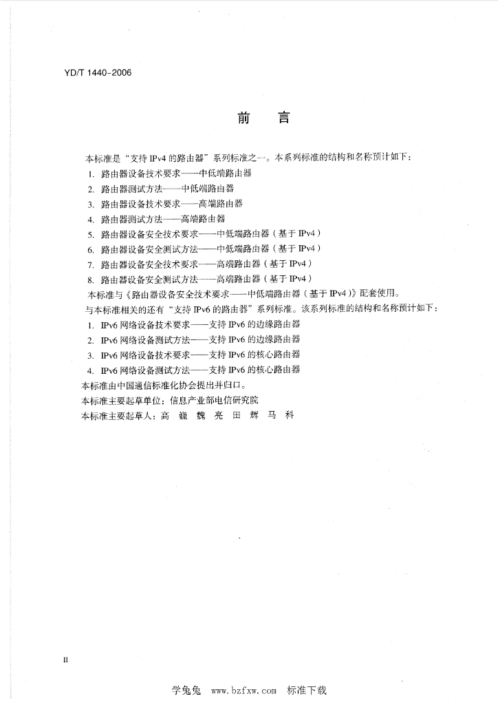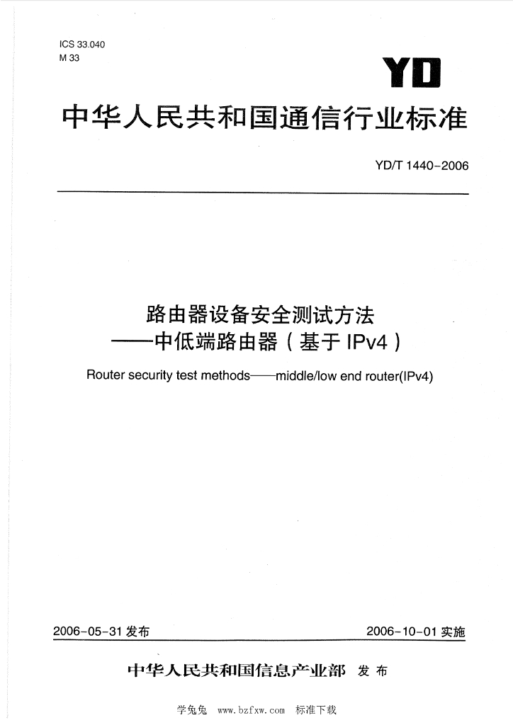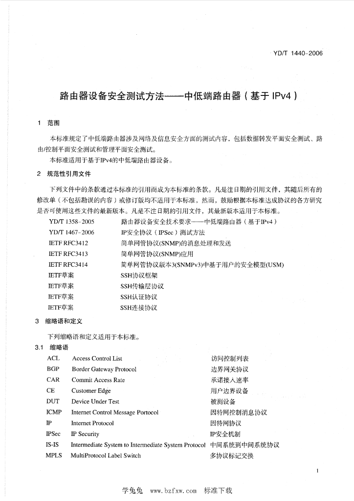 YD/T 1440-2006 路由器设备安全测试方法——中低端路由器(基于IPv4)