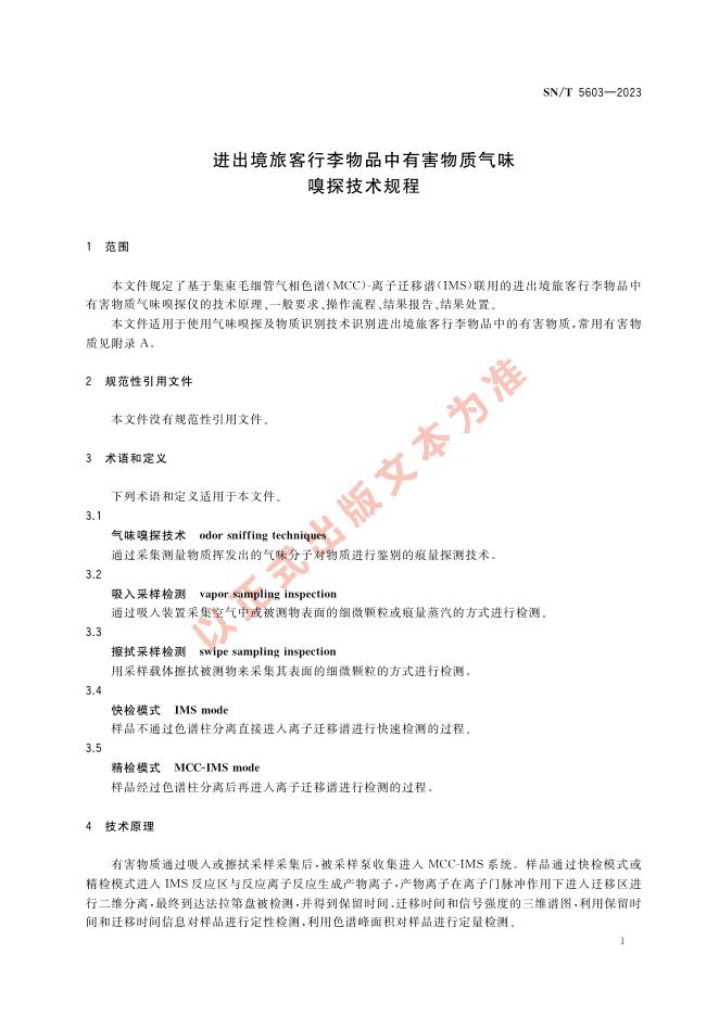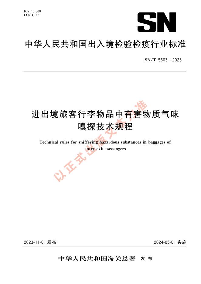SN/T 5603-2023 进出境旅客行李物品中有害物质气味嗅探技术规程