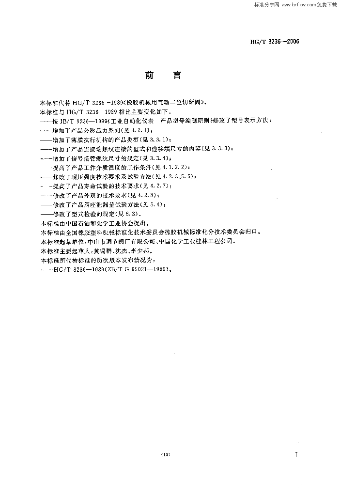 HG/T 3236-2006 橡胶机械用气动二位切断阀