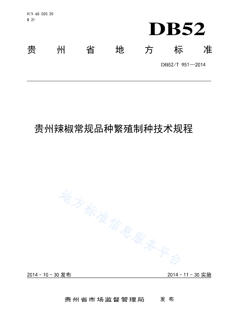 DB52/T 951-2014 贵州辣椒常规品种繁育制种技术规程