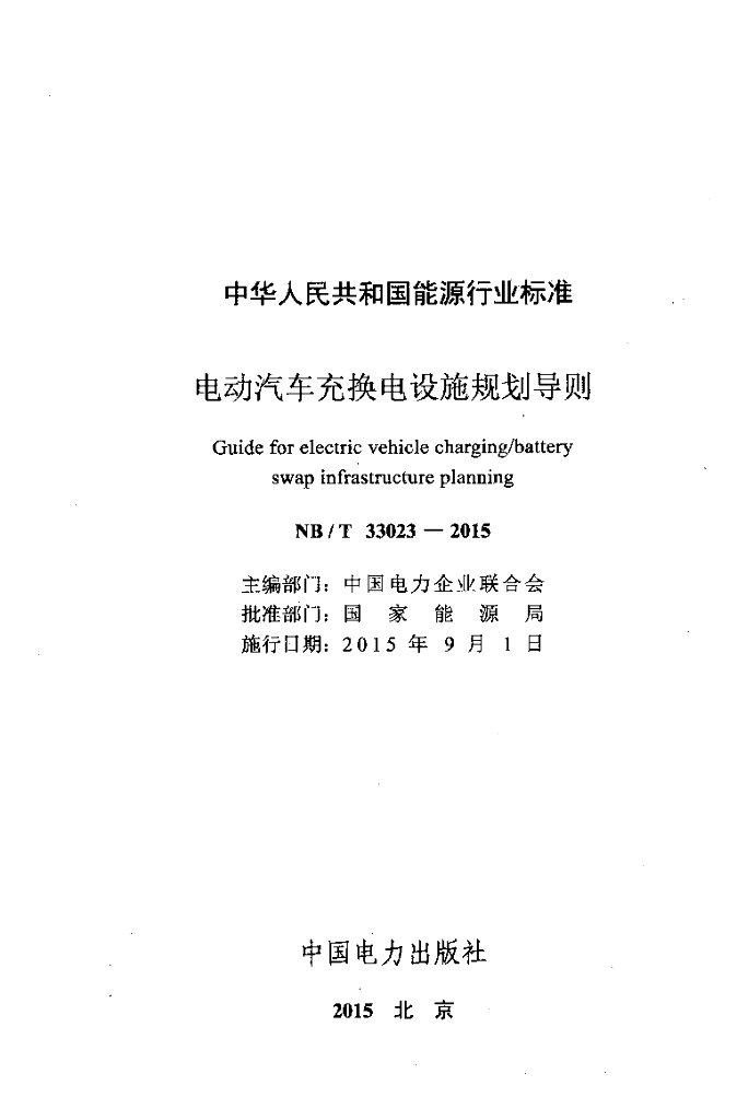 NB/T 33023-2015 电动汽车充换电设施规划导则