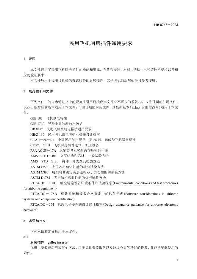 HB 8743-2023 民用飞机厨房插件通用要求