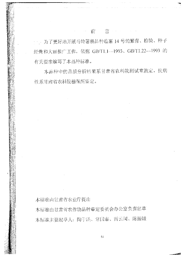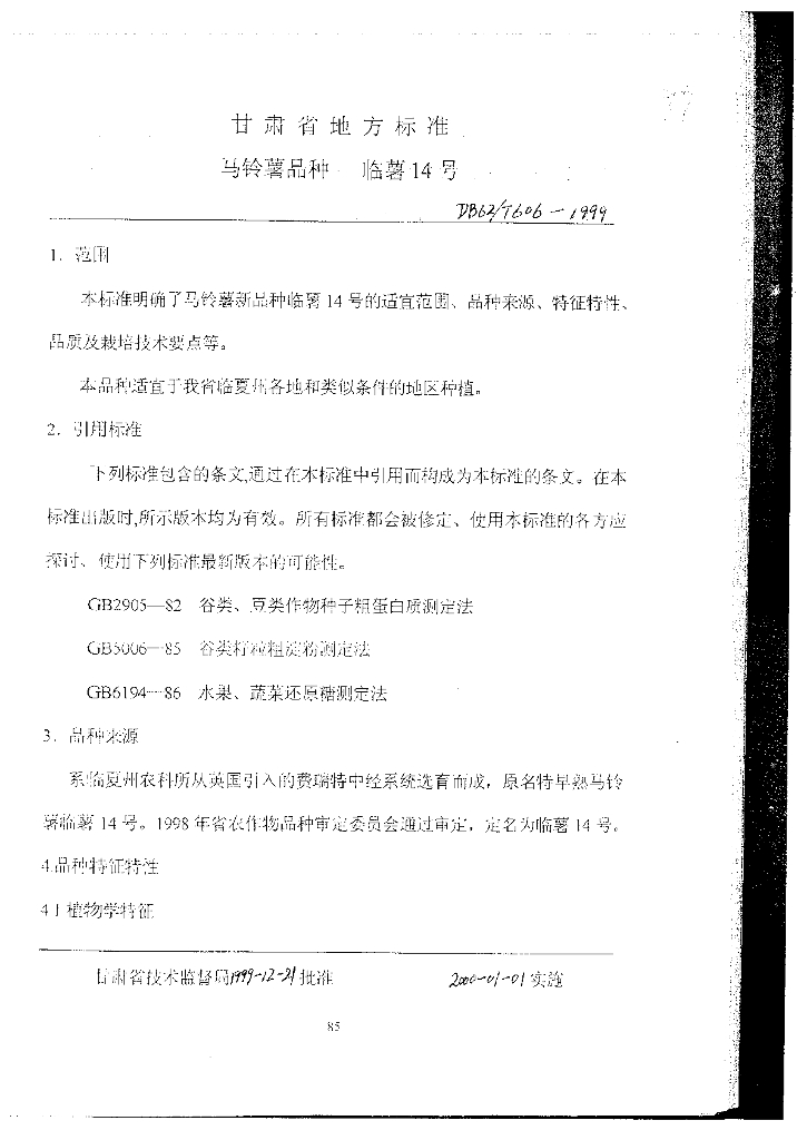 DB62/T 606-1999 马铃薯品种临薯14号