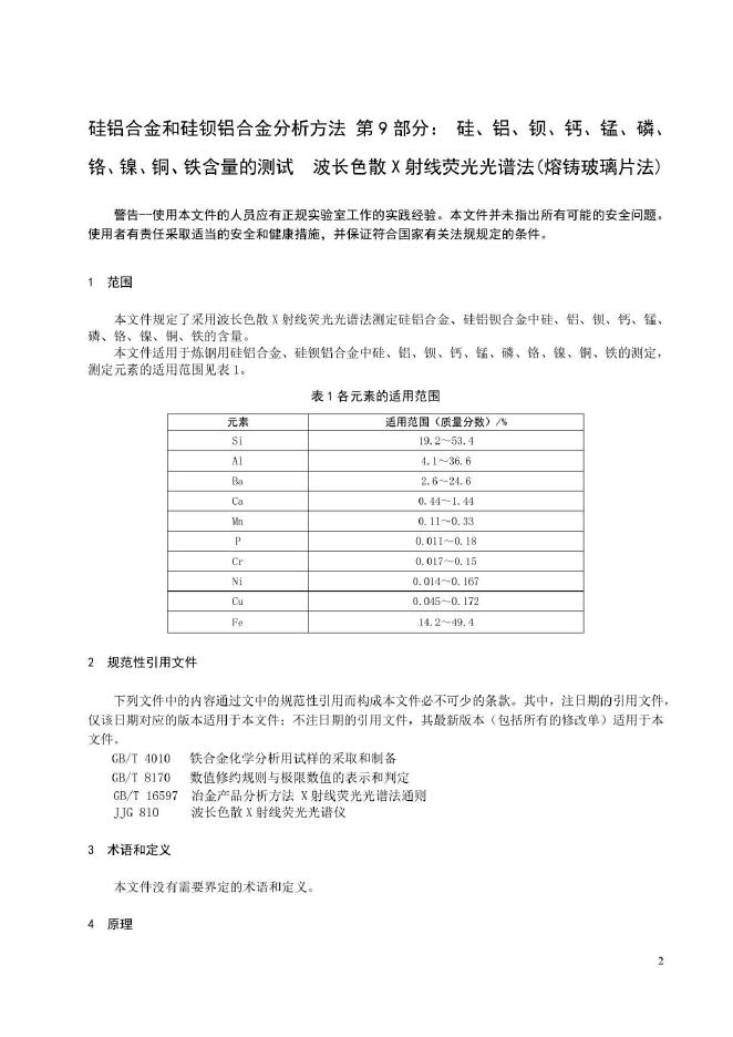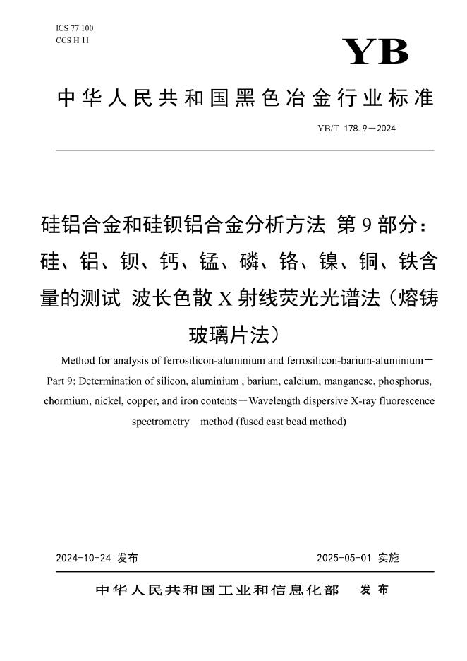 YB/T 178.9-2024 硅铝合金和硅钡铝合金分析方法 第9部分:硅、铝、钡、钙、锰、磷、铬、镍、铜、铁含量的测试 波长色散X射线荧光光谱法(熔铸玻璃片法)