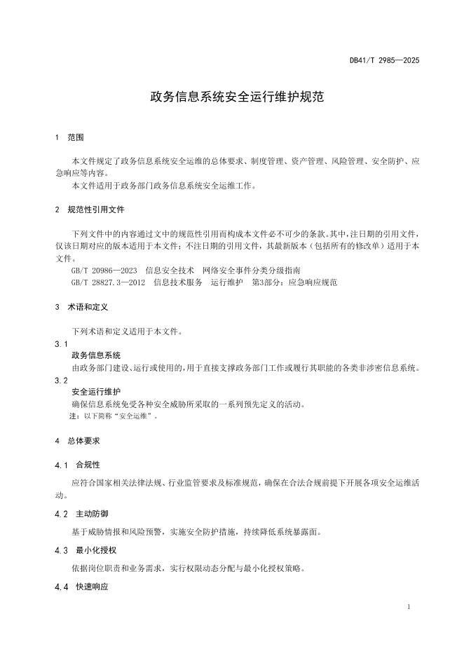 DB41/T 2985-2025 政务信息系统安全运行维护规范