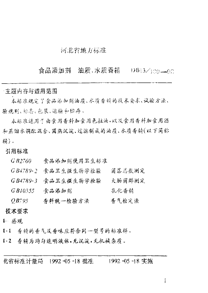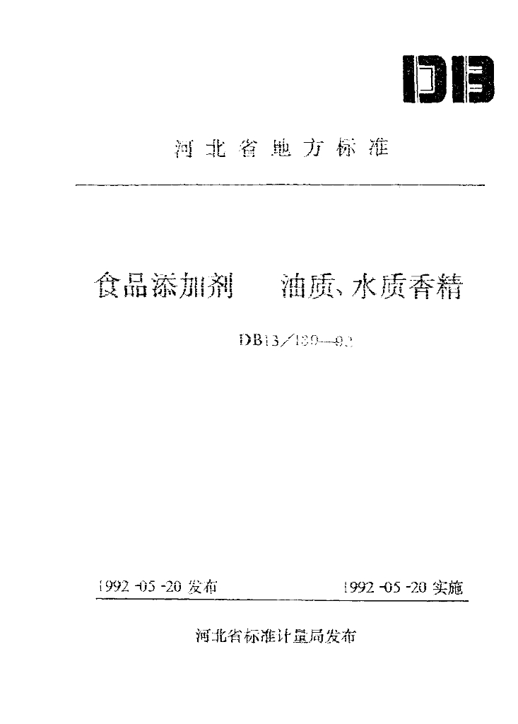 DB13/ 139-1992 食品添加剂 油质、水质香精