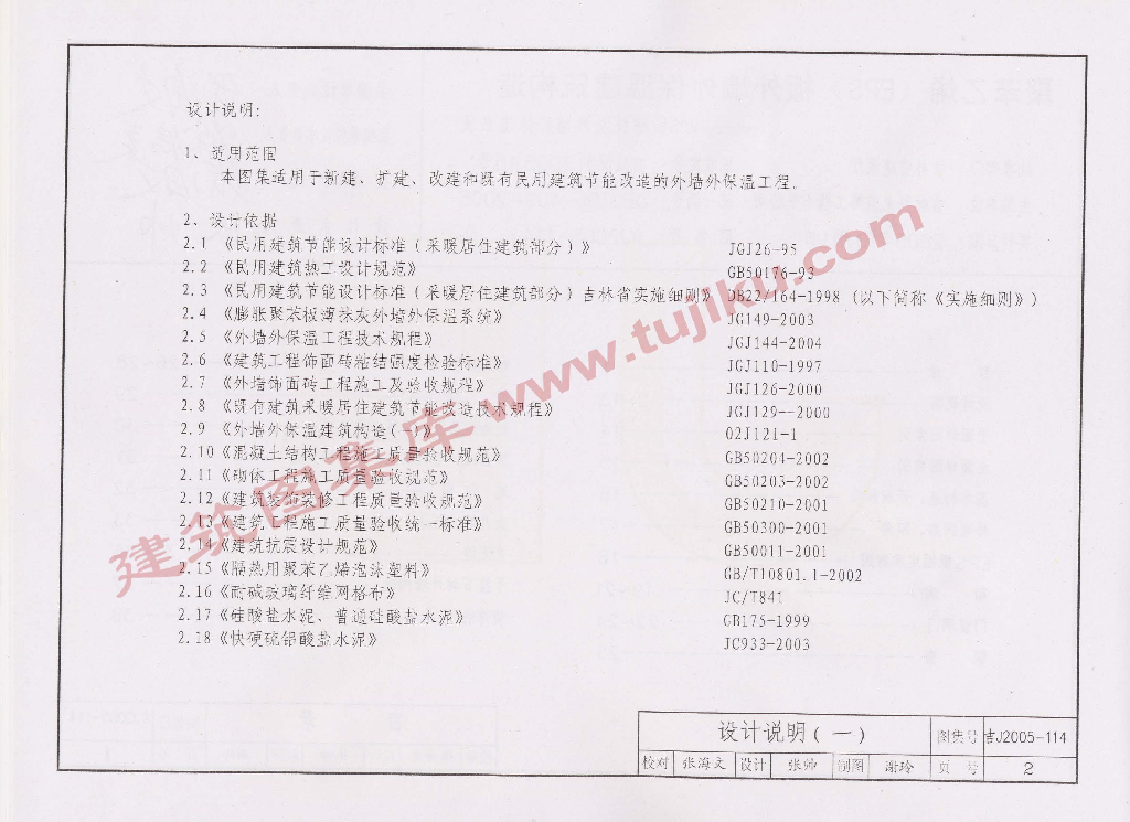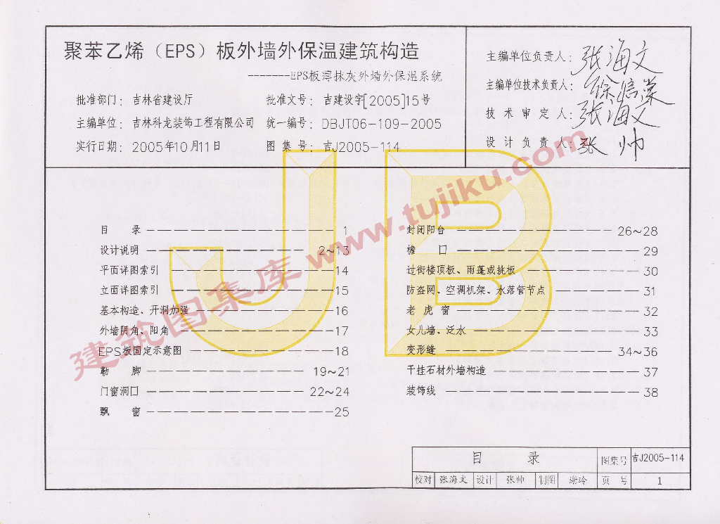 吉J2005-114 聚苯乙烯(EPS)板外墙外保温建筑构造图集