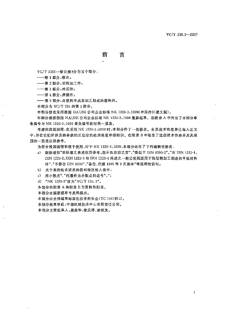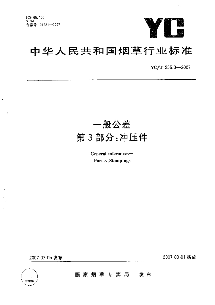 YC/T 235.3-2007 一般公差 第3部分:冲压件