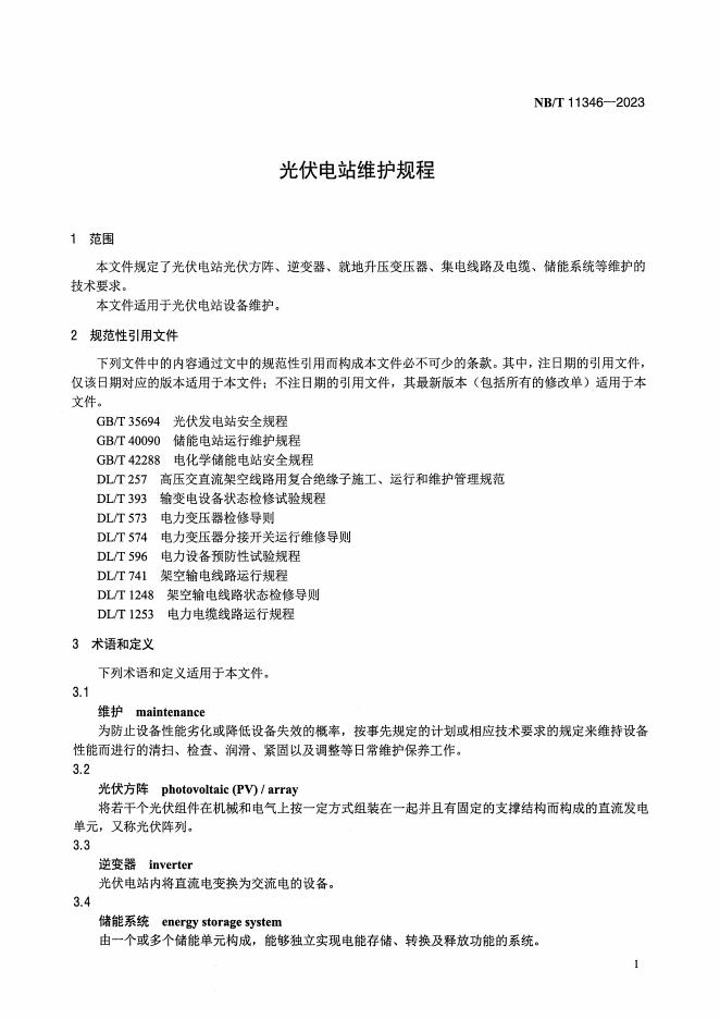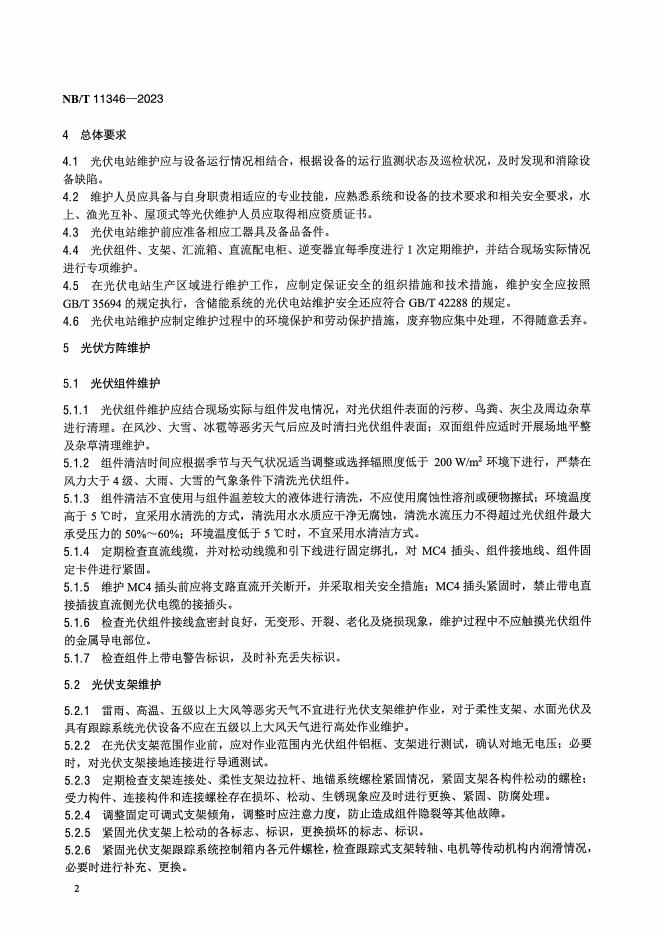 NB/T 11346-2023 光伏电站维护规程