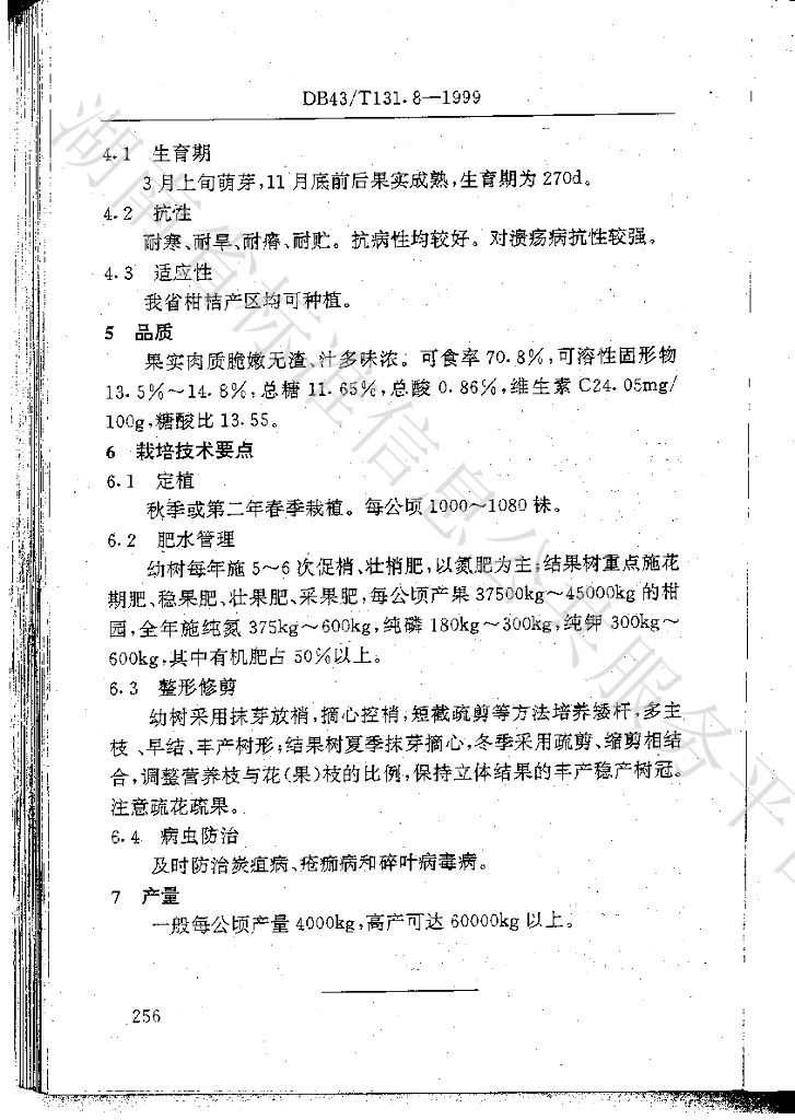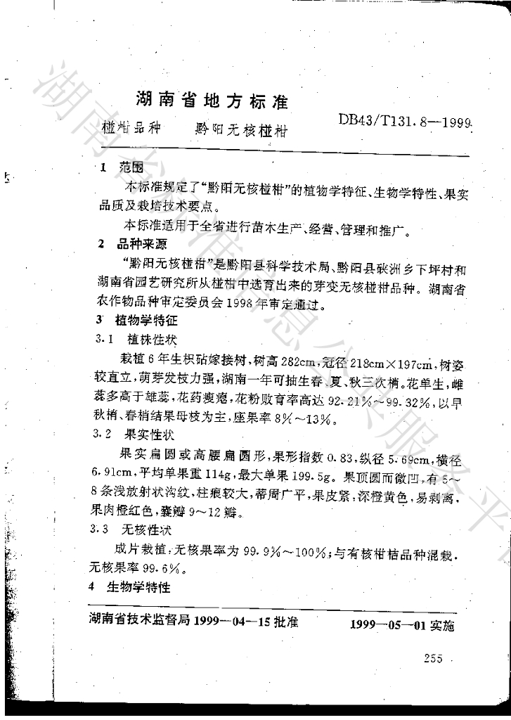 DB43/T 131.8-1999 椪柑品种 黔阳无核椪柑