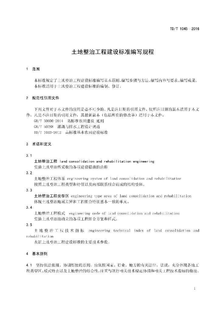 TD/T 1045-2016 土地整治工程建设标准编写规程