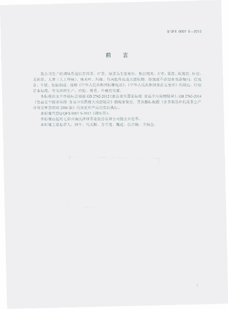 Q/QFX 0007S-2015 昆明七彩云南庆沣祥茶业股份有限公司 调味茶