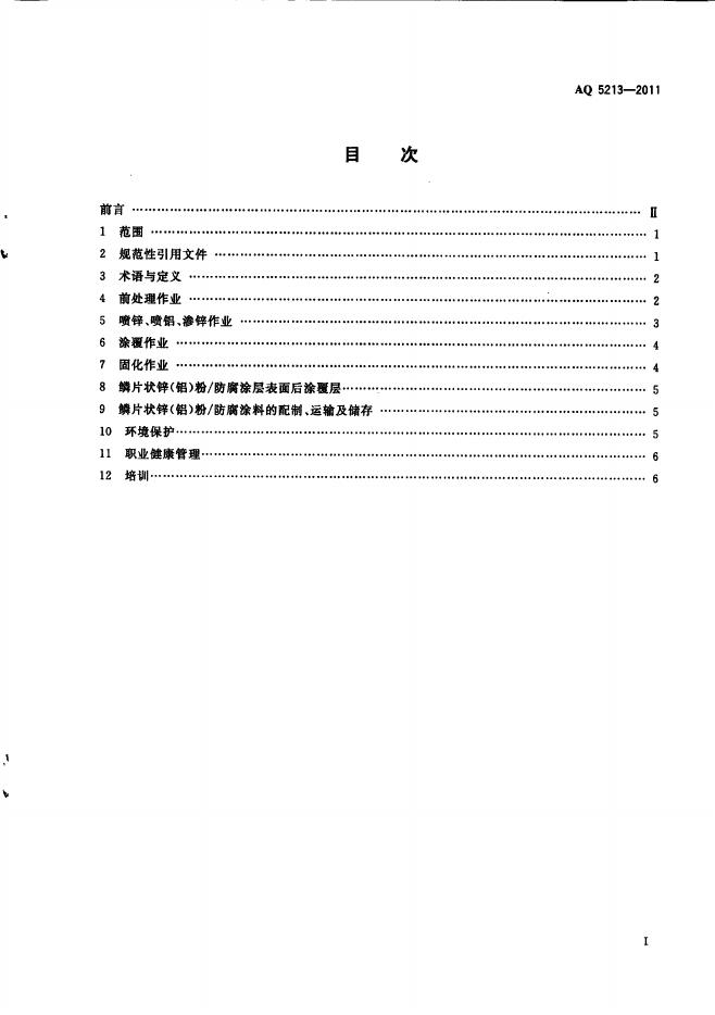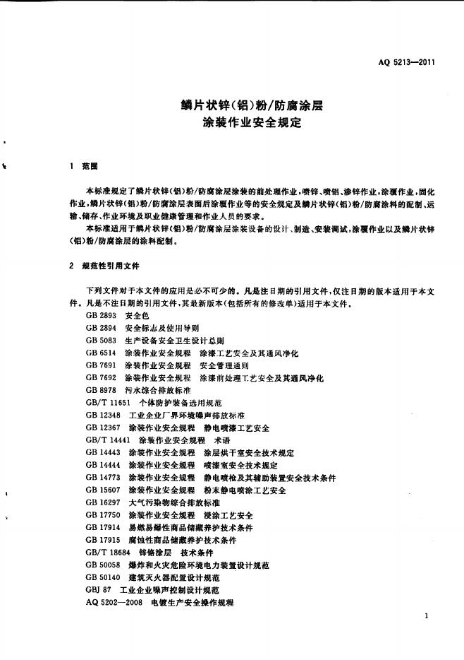 AQ 5213-2011 鳞片状锌(铝)粉/防腐涂层涂装作业安全规定