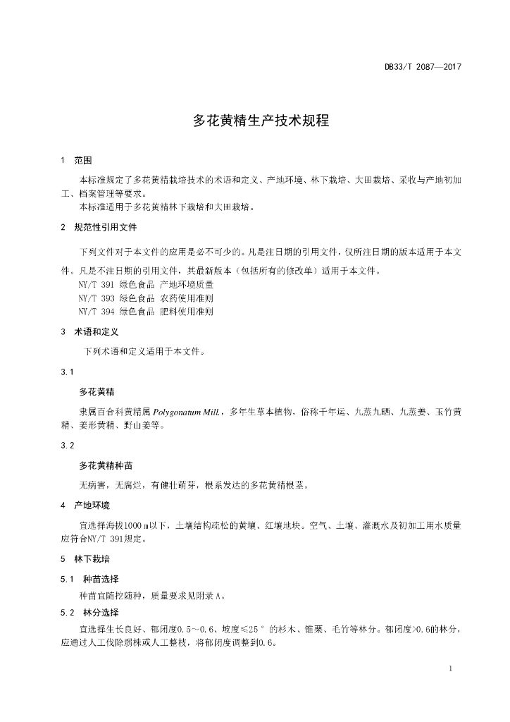 DB33/T 2087-2017 多花黄精生产技术规程