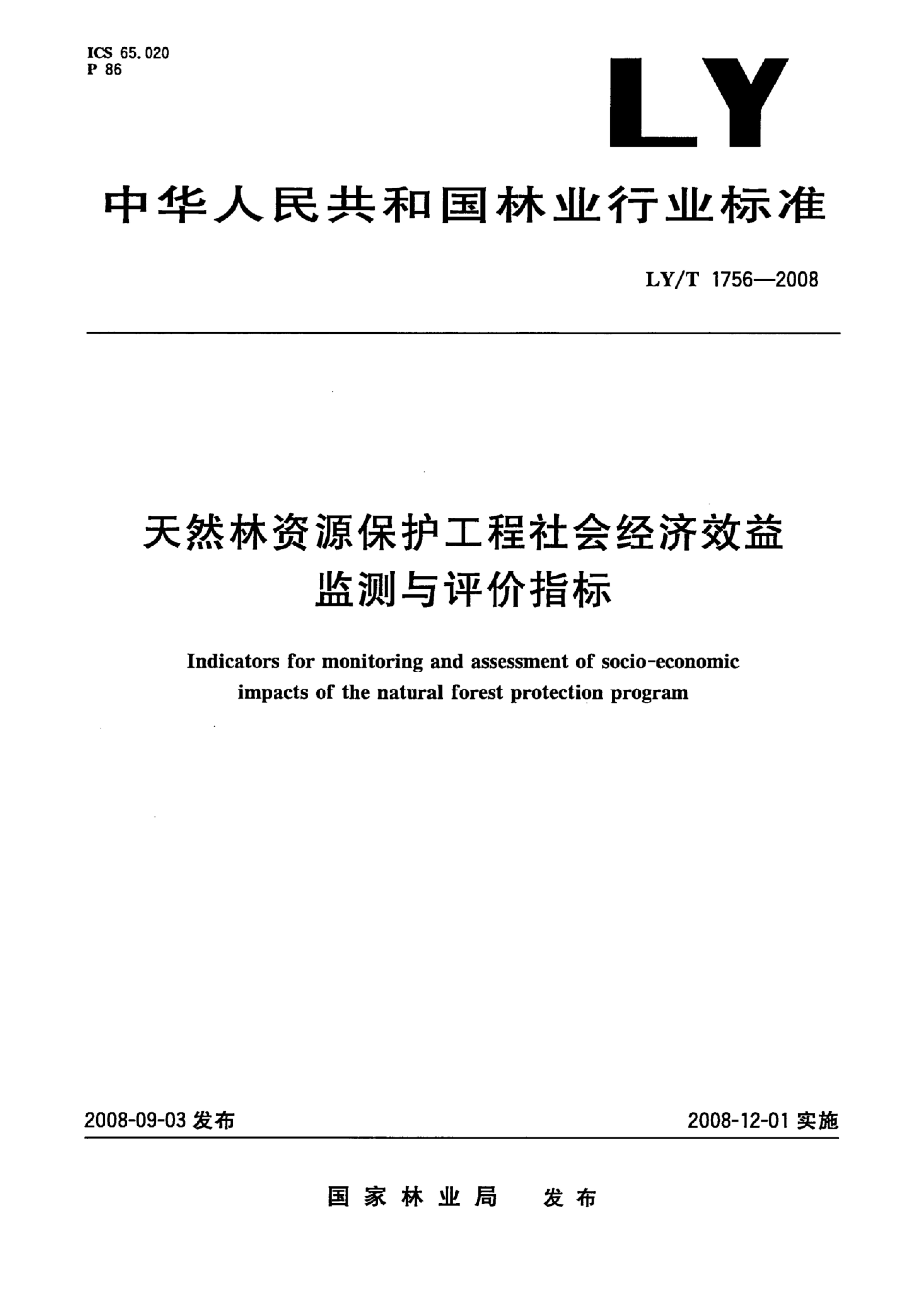 LY/T 1756-2008 天然林资源保护工程社会经济效益监测与评价指标
