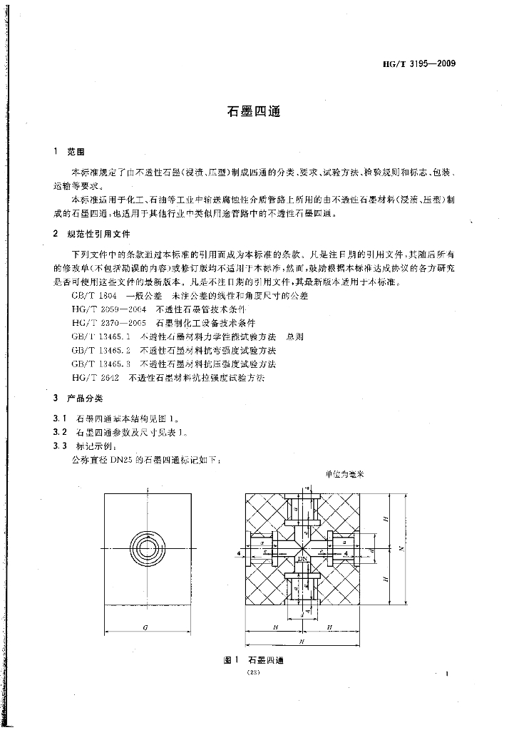 HG/T 3195-2009 代替 HG/T 3195-1981 石墨四通