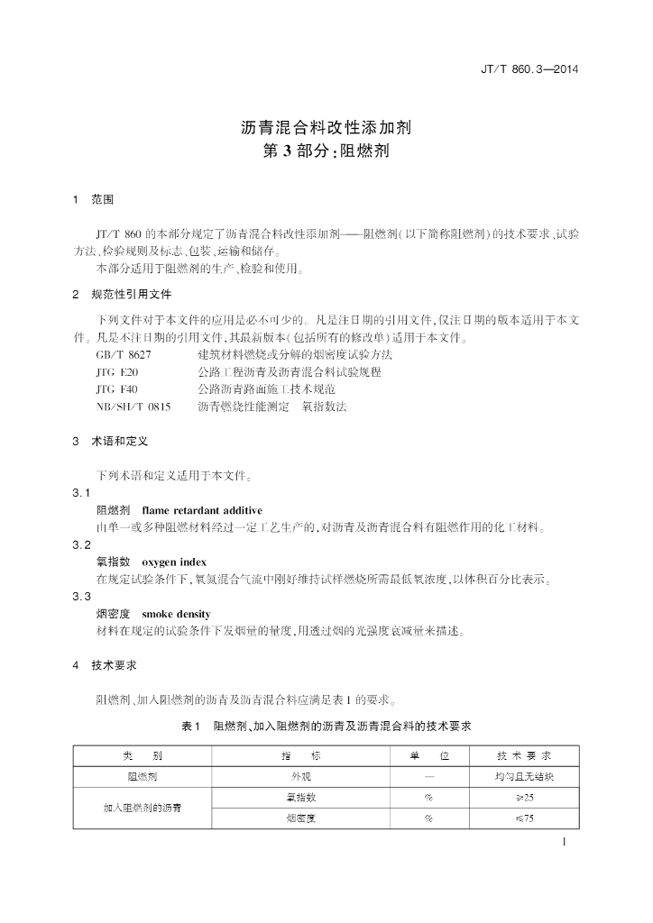 JT/T 860.3-2014 沥青混合料改性添加剂 第3部分:阻燃剂