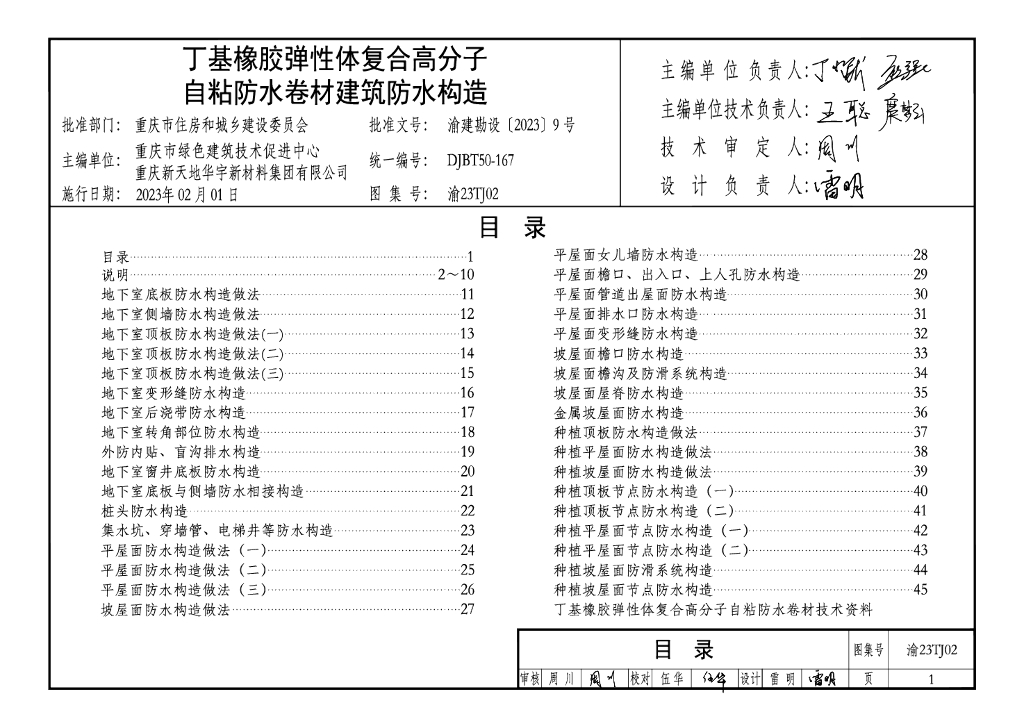 渝23TJ02 丁基橡胶弹性体复合高分子自粘防水卷材建筑防水构造图集(DJBT50-167)