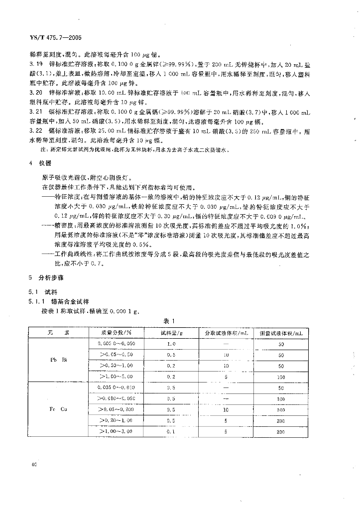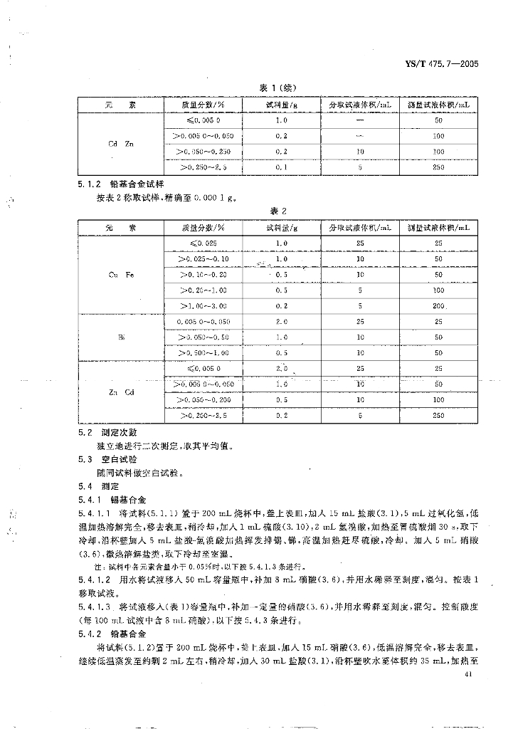 YS/T 475.7-2005 铸造轴承合金化学分析方法铅、铜、铁、铋、锌、镉量的测定原子吸收光谱法