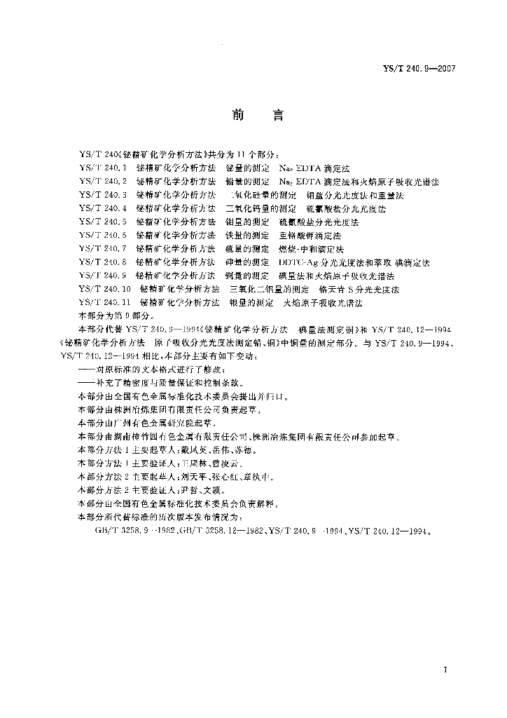 YS/T 240.9-1994;YS/T 240.12-1994