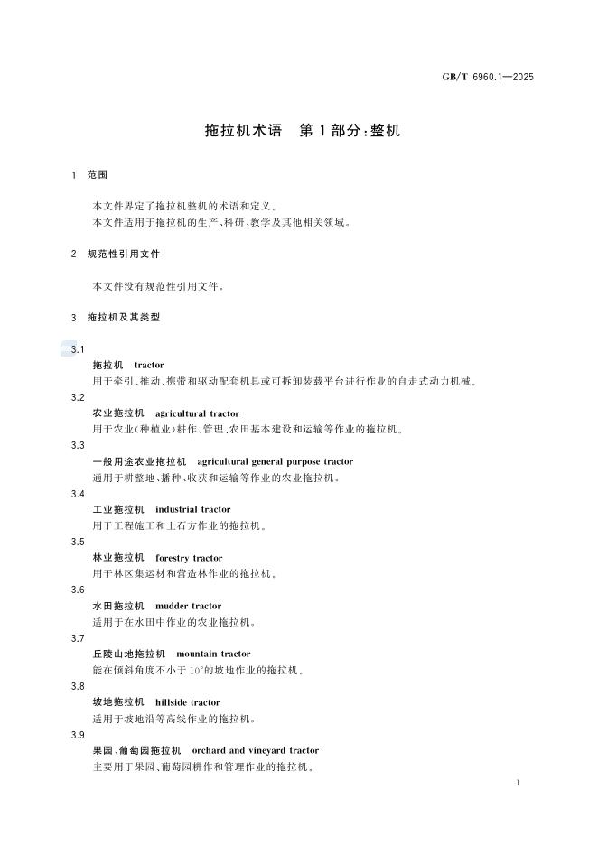 GB/T 6960.1-2025 拖拉机术语 第1部分:整机