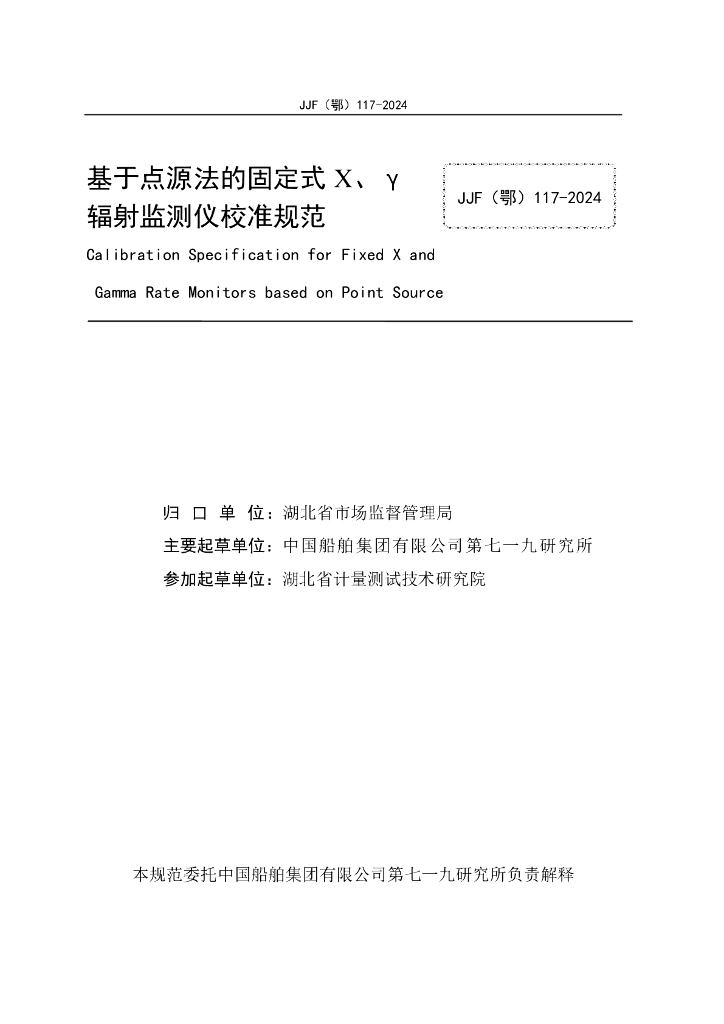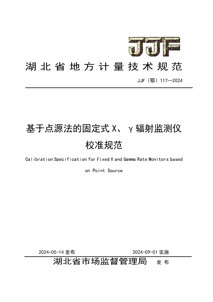 JJF(鄂)117-2024 基于点源法的固定式X、γ辐射监测仪校准规范