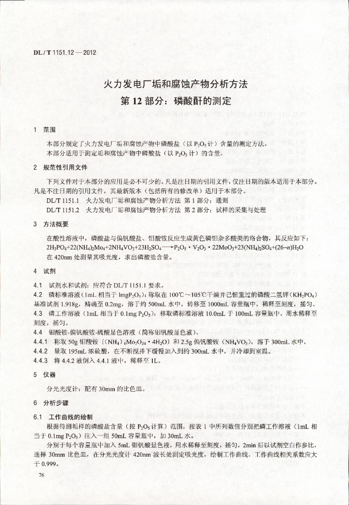 DL/T 1151.12-2012 火力发电厂垢和腐蚀产物分析方法 第12部分:磷酸酐的测定