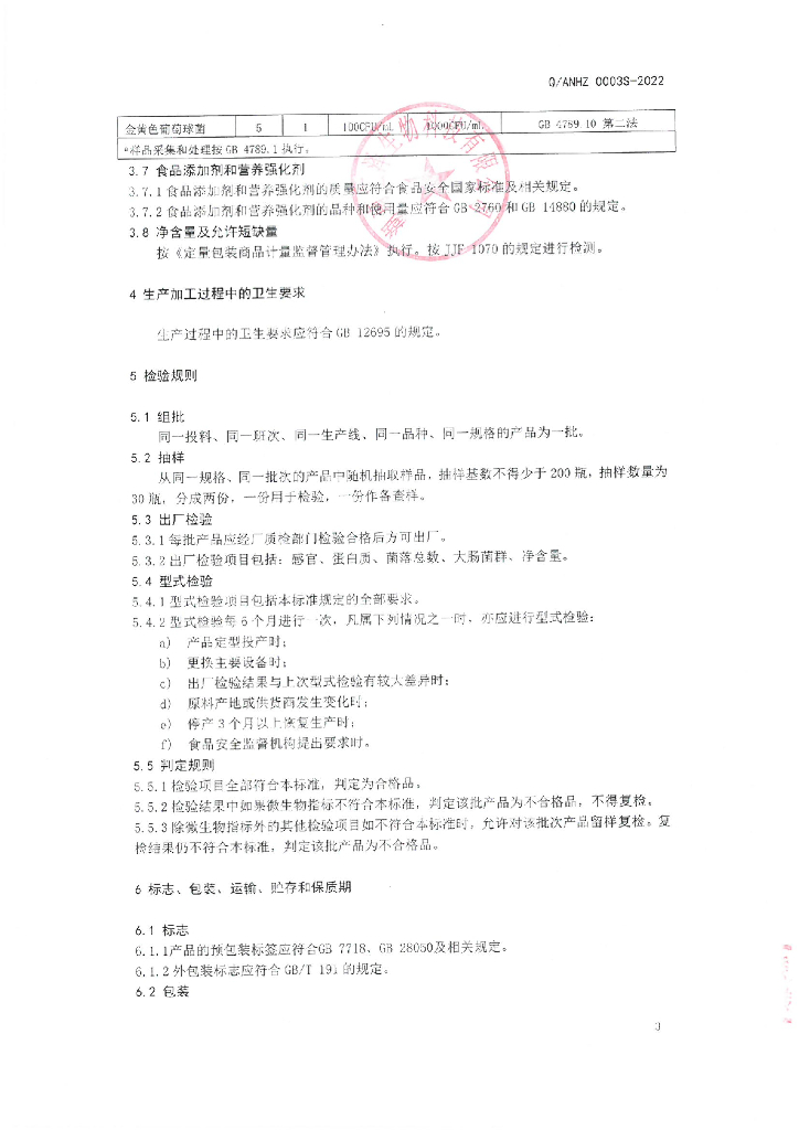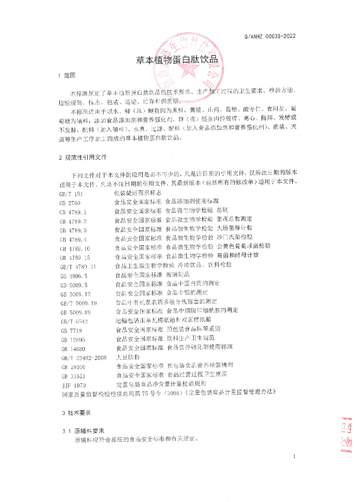Q/ANHZ 0003S-2022 草本植物蛋白肽饮品