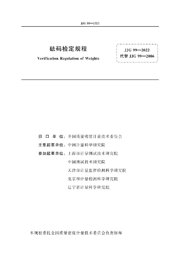 - 代替标准:JJG 99-2006