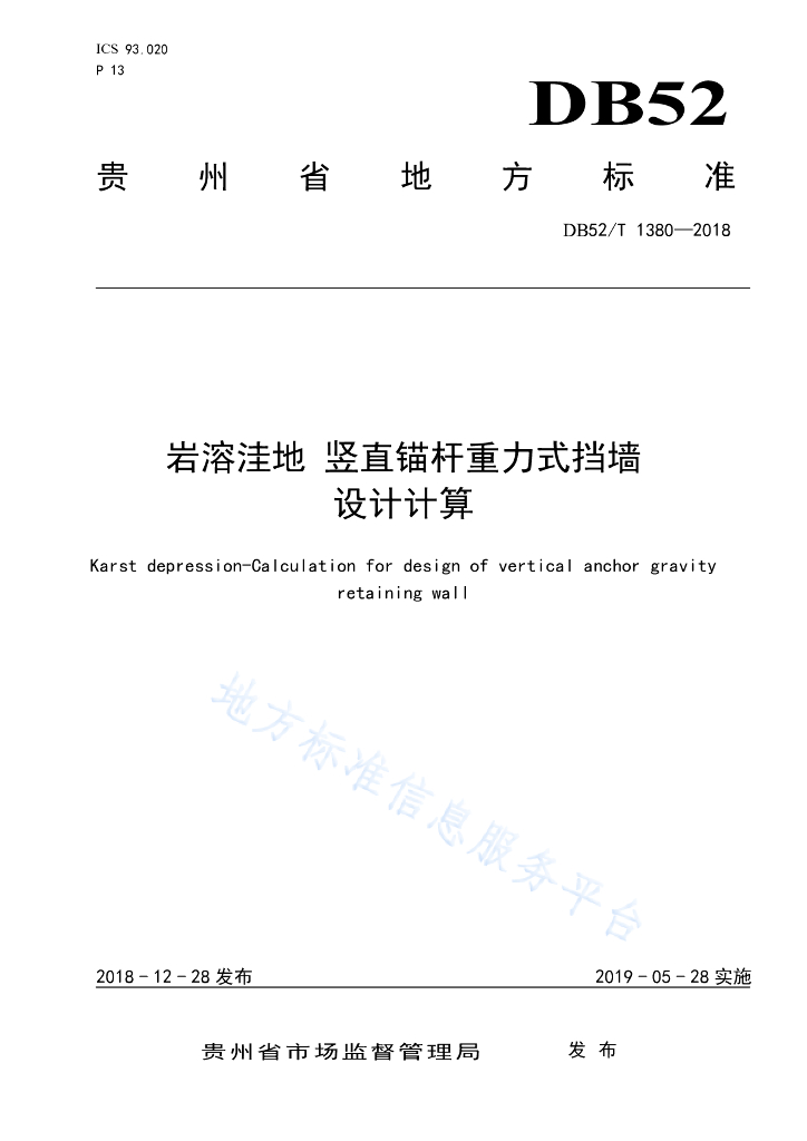 DB52/T 1380-2018 岩溶洼地 竖直锚杆重力式挡墙设计计算